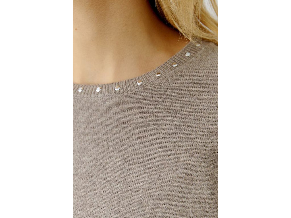 Oui dámský béžový svetr s kamínky 0094150 b.8151